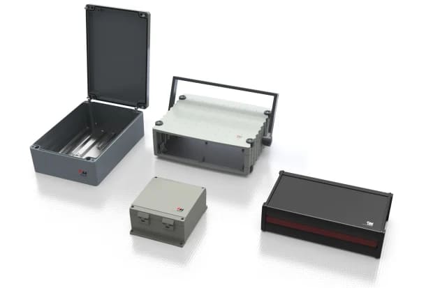 La gamme de boîtiers standards en aluminium moulé sous pression comprend plus de 40 tailles, de 45×50×30 mm à 600×600×200 mm. Ces boîtiers sont idéaux pour l’intégration de composants électriques et électromécaniques tels que les bornes, boutons-poussoirs, éléments de commutation et ensembles électroniques avec circuits imprimés. Ils répondent aux normes de qualité les plus strictes et offrent une protection EMC de base.